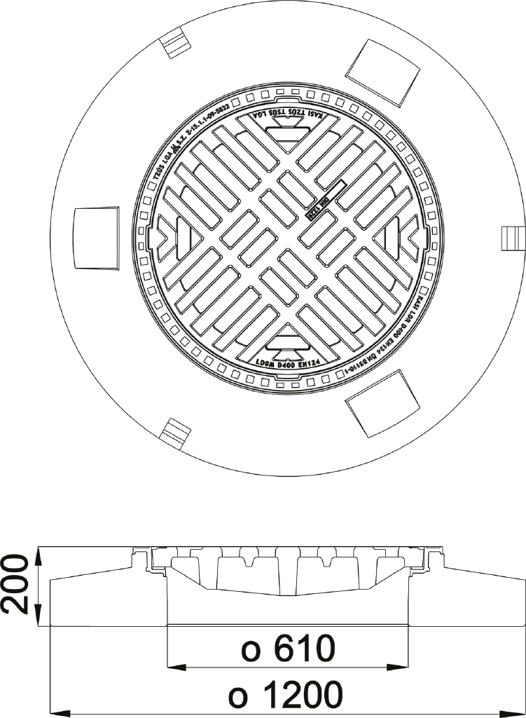 mit Eigengewicht, horizontale PUR-Dämpfungseinlage im Rahmen, EPDM-Dämpfungseinlage im Deckel